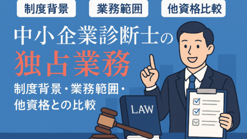 しごと相談 中小企業診断士の独占業務とは何か?制度的背景から具体的業務範囲・他資格との比較まで徹底解説 「中小企業診断士って、実は独占業務がないって知っていますか?『せっかく難関資格を取っても差別化が難しいのでは…』と不安に感じていませんか。実際、中小企業診断士試験は【合格率5~7%台】の高難易度で知られ、多くの専門知識と実務経験が問われる資... 2025.09.24 しごと相談