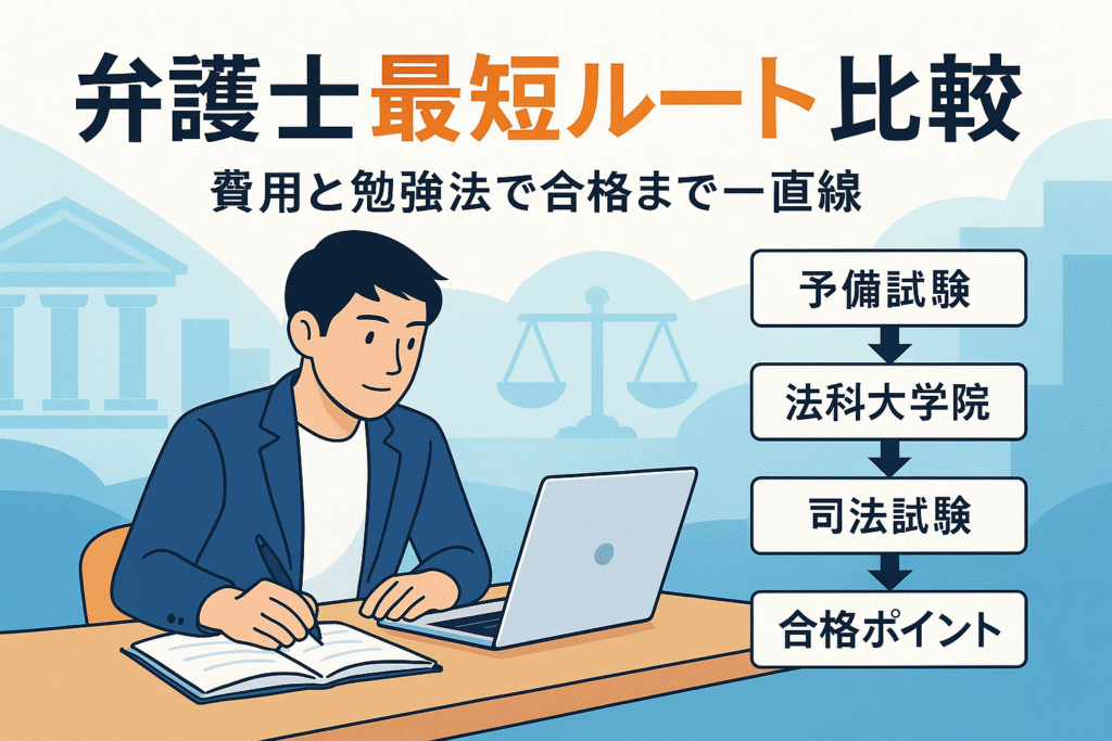 | 予備試験経由 | 予備試験合格で司法試験受験可 | 受験料+講座等の対策費 | 費用と時間を抑えて最短志向 |